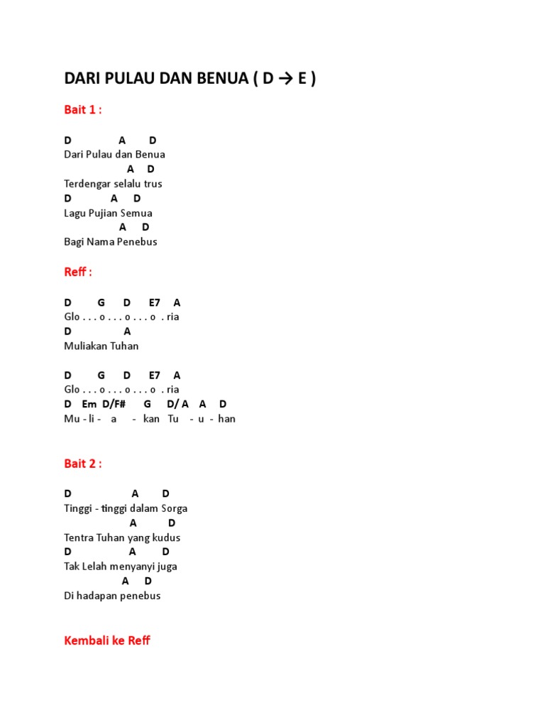 Not Angka.lagu Dari Pulau.dan Benua : Gunung Agung. Not angka.lagu dari pulau.dan benua. Lagu pujian semua, bagi nama penebus. We did not find results for: Not angka lagu natal dari pulau dan benua not angka lagu natal di hatiku not angka. From lh6.googleusercontent.com c g c dari pulau dan benua c g c terdengar selalu t'rus c g c lagu pujian semua c g c bagi nama penebus.